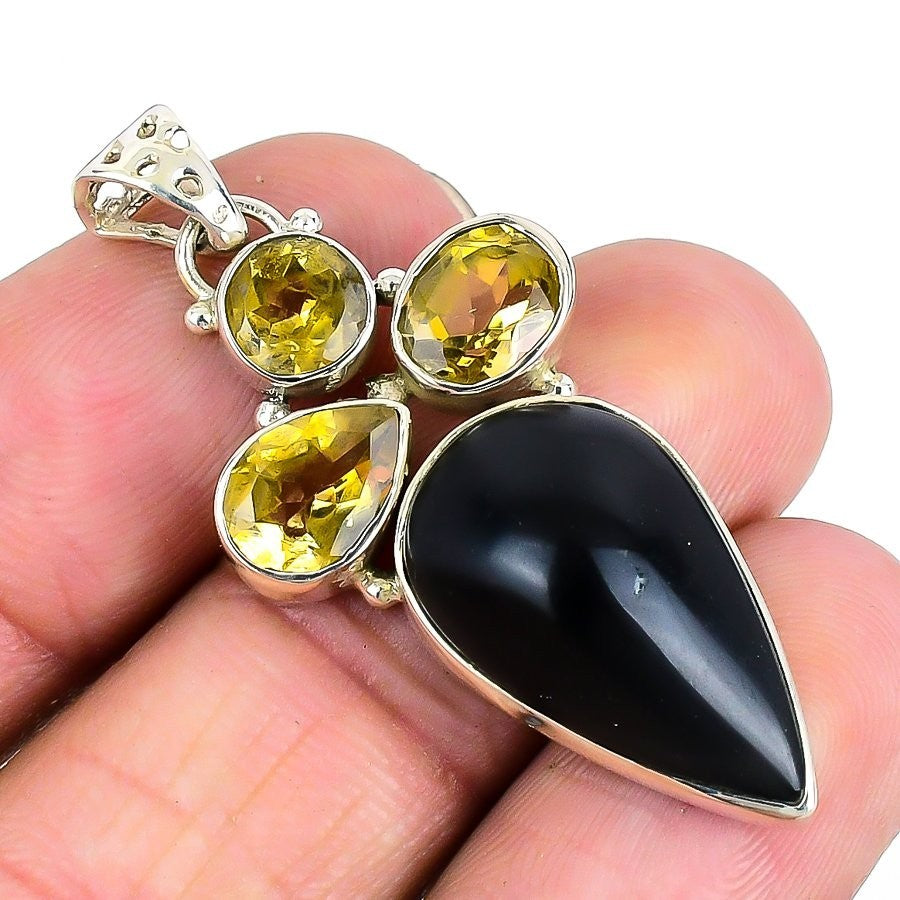 Black Onyx Stone 925 Silver Daughter Gift Mother Bezel Ethnic Pendant Jewelry
