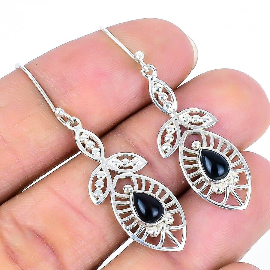 Black Onyx Stone 925 Sterling Silver Mother Drop Dangle Root Chakra New Earrings