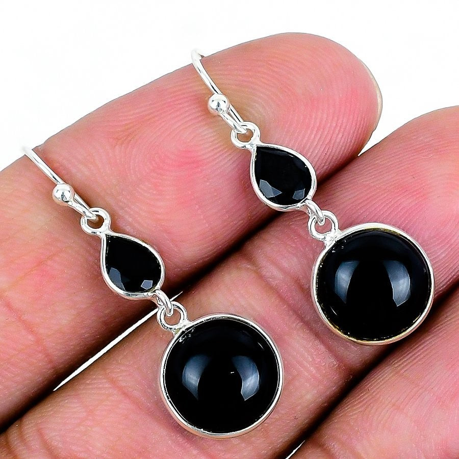 Black Onyx Stone 925 Sterling Silver Trendy Hook Elegant Dangle Earrings Jewelry