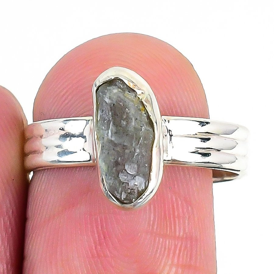 Black Rutile Gemstone 925 Solid Silver Wife Stackable Engagement Ring Size 8.5