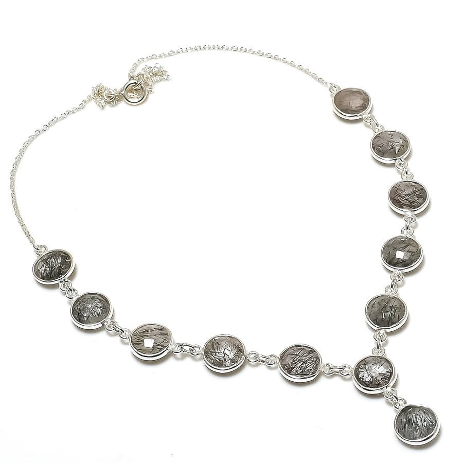 Elegant Black Rutile Gemstone 925 Sterling Silver Chain in 9