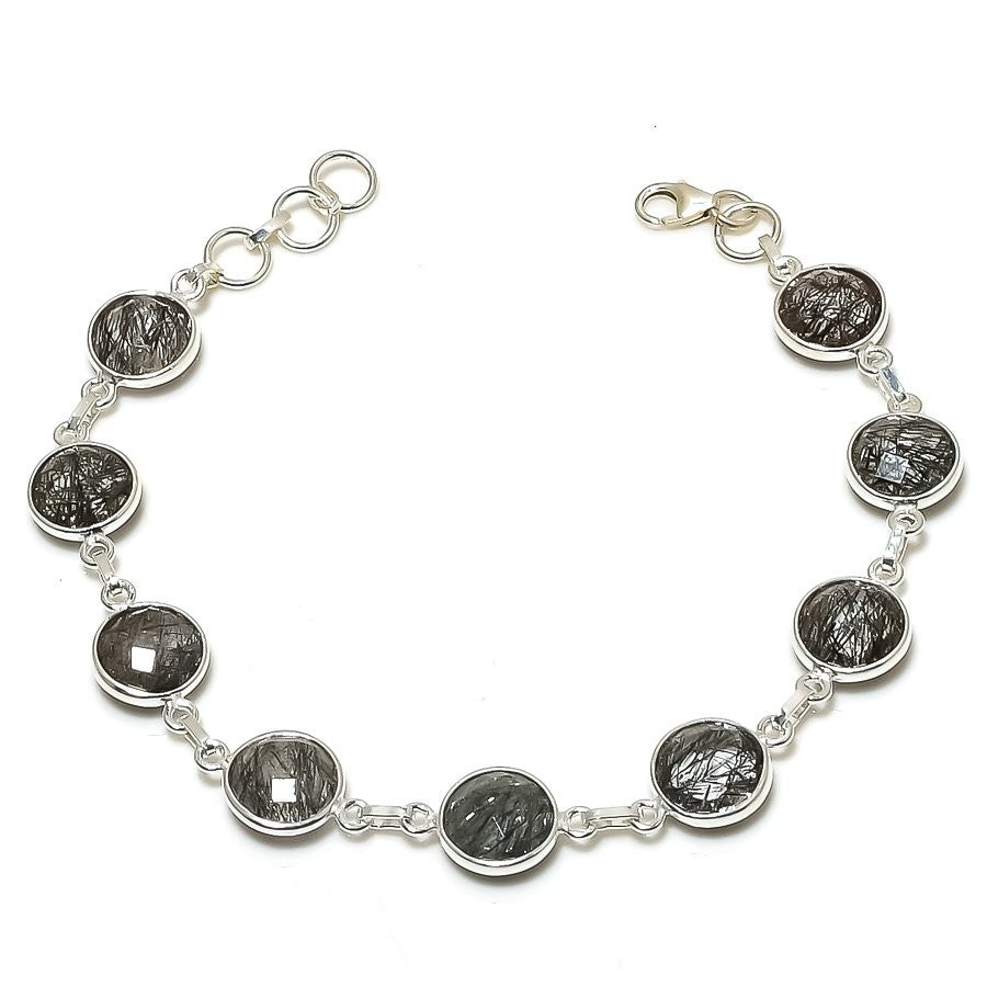 Black Rutile Gemstone 925 Sterling Silver Chain Daughter Gift Bracelet Jewelry