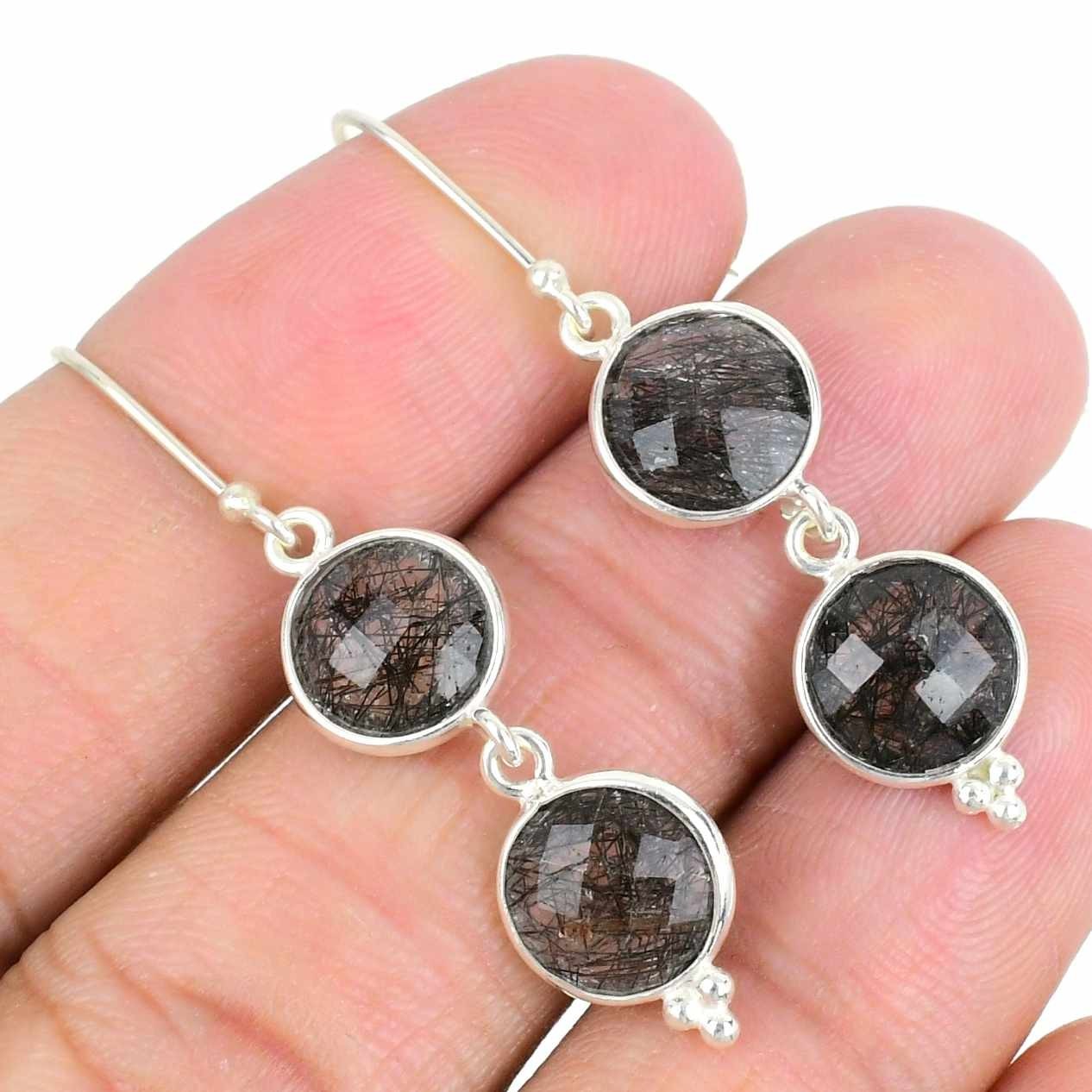 Elegant Black Rutile Gemstone 925 Sterling Silver Hook in 92