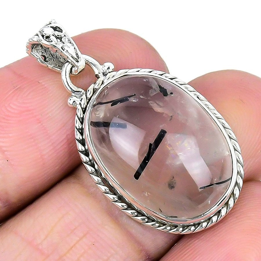 Black Rutile Gemstone Channel Set Wife Trendy Engagement New Pendant 925 Silver