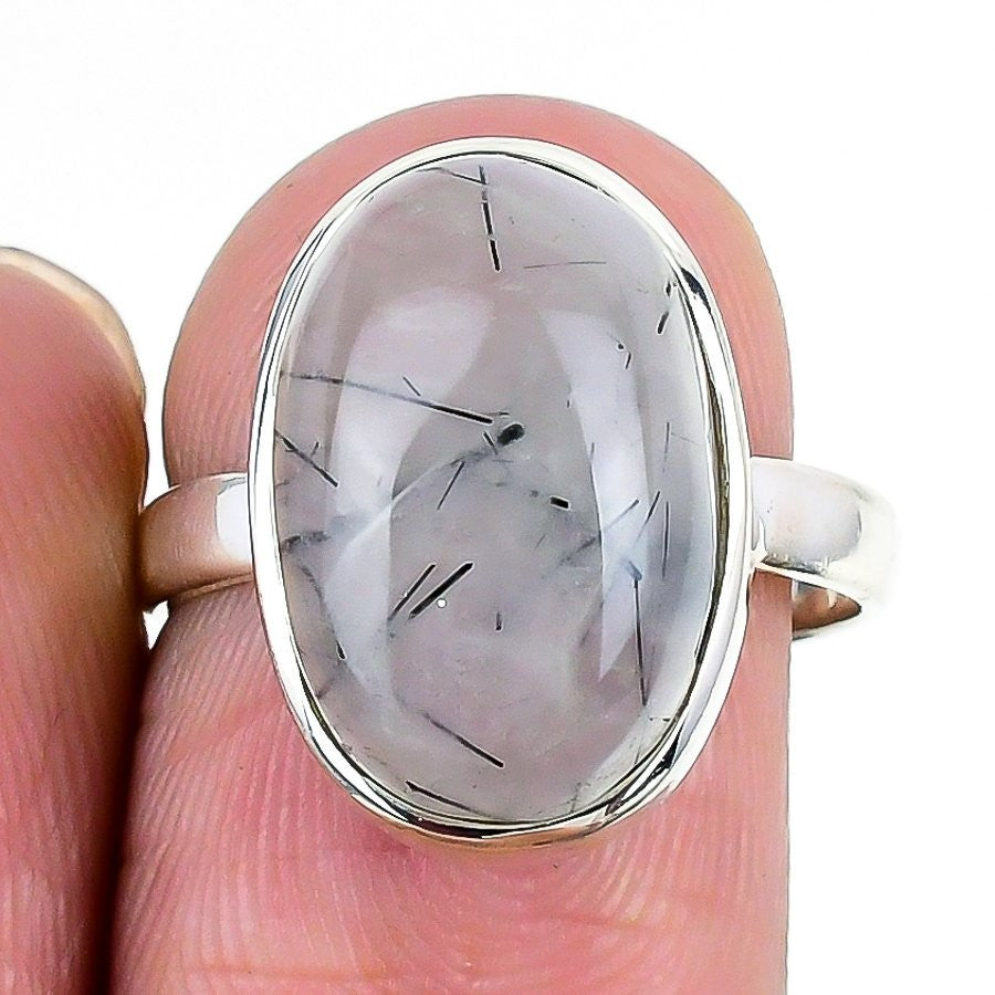 Black Rutile Gemstone Engagement Statement Daughter Ring Jewelry 925 Silver US 8
