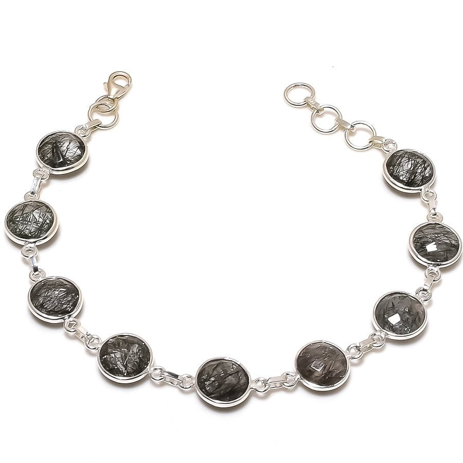 Black Rutile Gemstone Solid Silver Artisan Wedding Birthday Chain Wife Bracelet