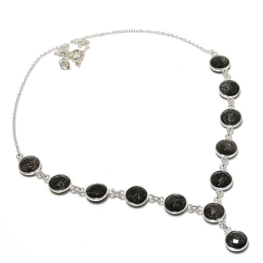 Elegant Black Rutile Gemstone Solid Sterling Silver Chain in