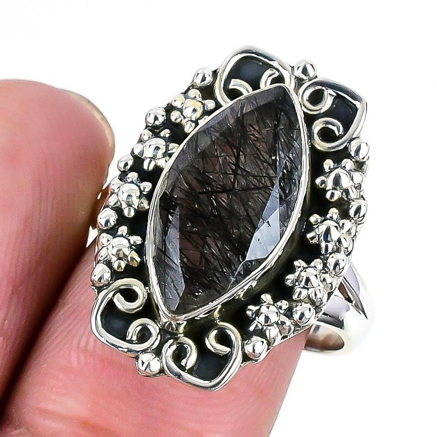Black Rutile Gemstone Sterling Silver Daughter Boho Cluster Birthday Ring Size 9