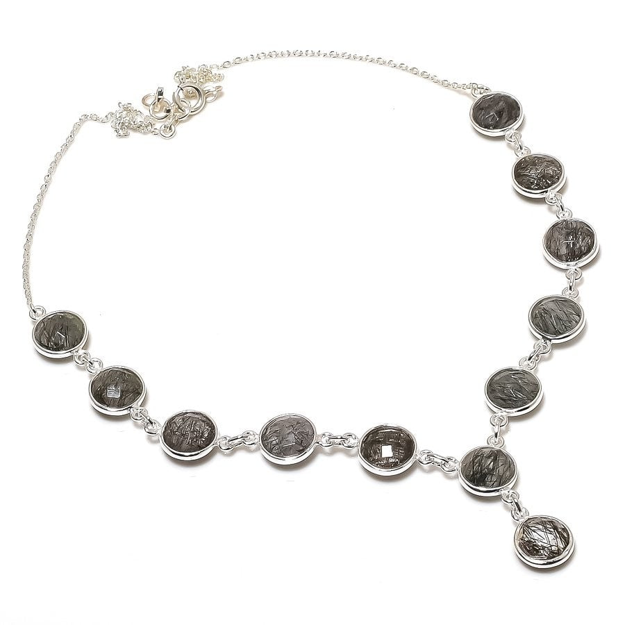 Black Rutile Gemstone Sterling Silver Elegant Engagement Chain Necklace Jewelry