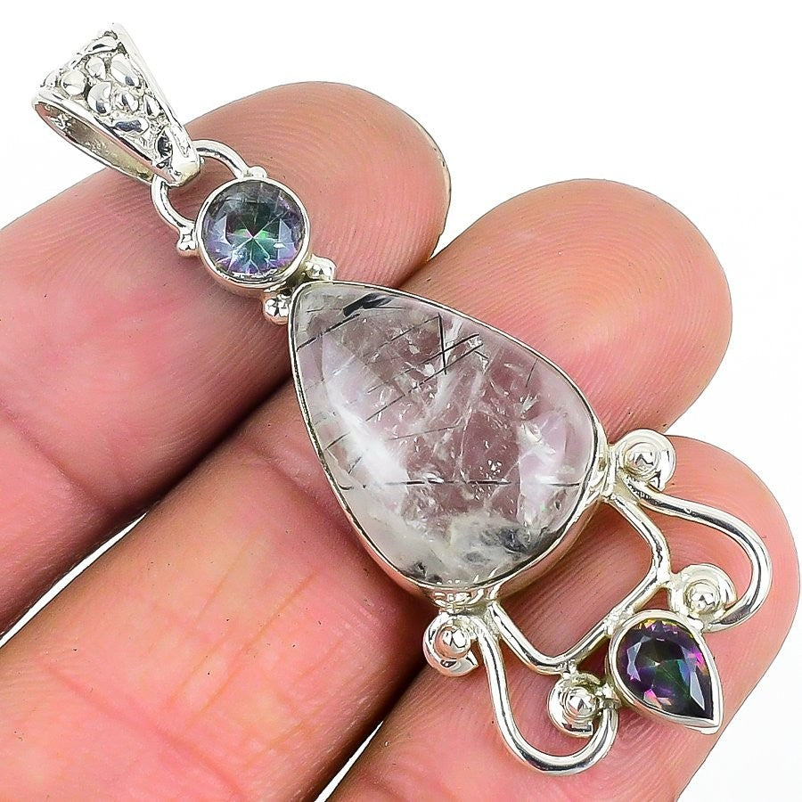 Black Rutile Stone 925 Sterling Silver Engagement Daughter Gift Pendant Jewelry