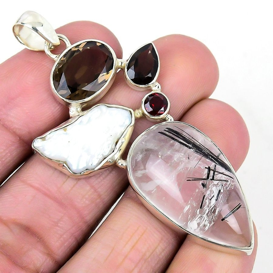 Black Rutile Stone Ethnic Mother Wedding Trendy New Pendant Jewelry Solid Silver