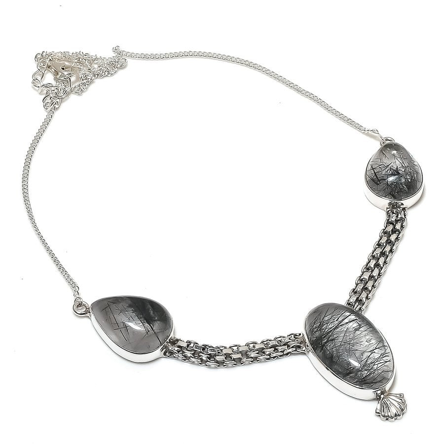 Black Rutile Stone Solid Silver Birthday Anniversary Unique Wife Chain Necklace