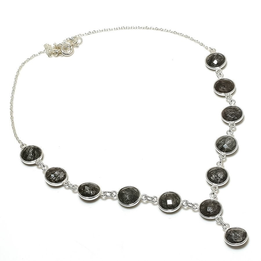 Elegant Black Rutile Stone Solid Sterling Silver Chain in 92
