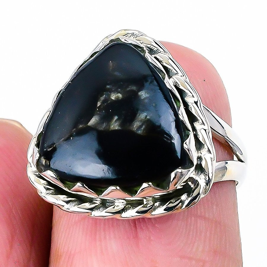 Black Seraphinite Gemstone Solid Sterling Silver Cluster New Ring Jewelry Size 7