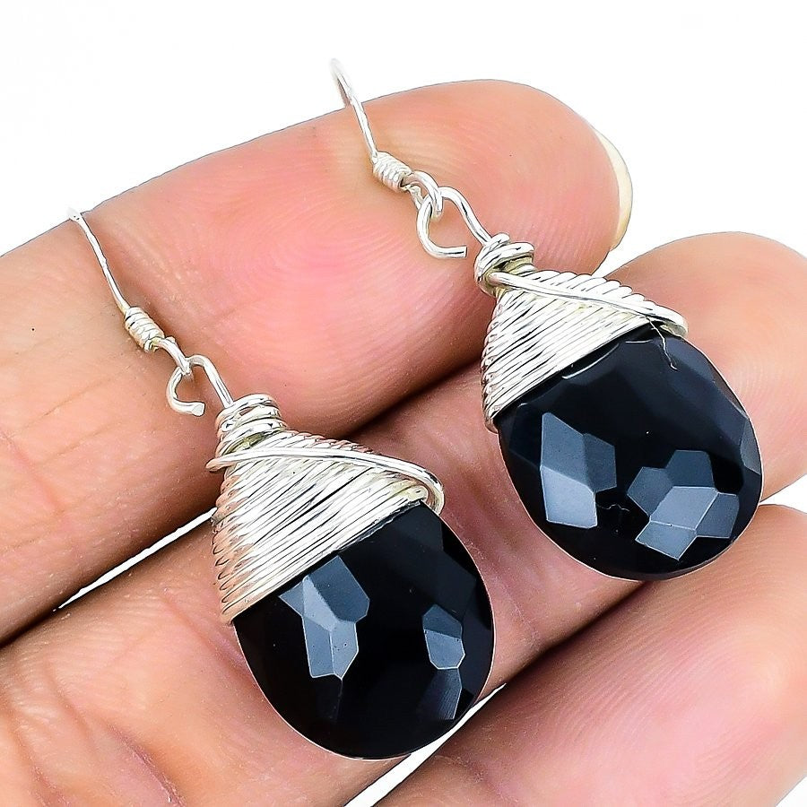 Black Spinel Gemstone Engagement Drop Sister Daughters Day Earrings Solid Silver