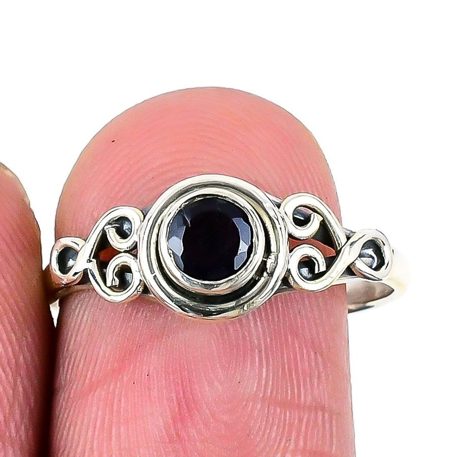 Black Spinel Stone Solid Sterling Silver Elegant Birthday Statement Ring US 8.5