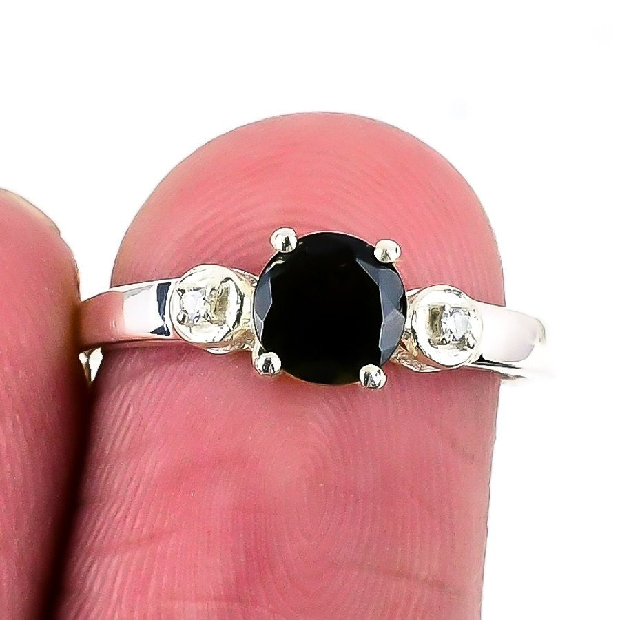 Black Spinel Stone Wife Statement Birthday Friend Gift Ring Sterling Silver US 7