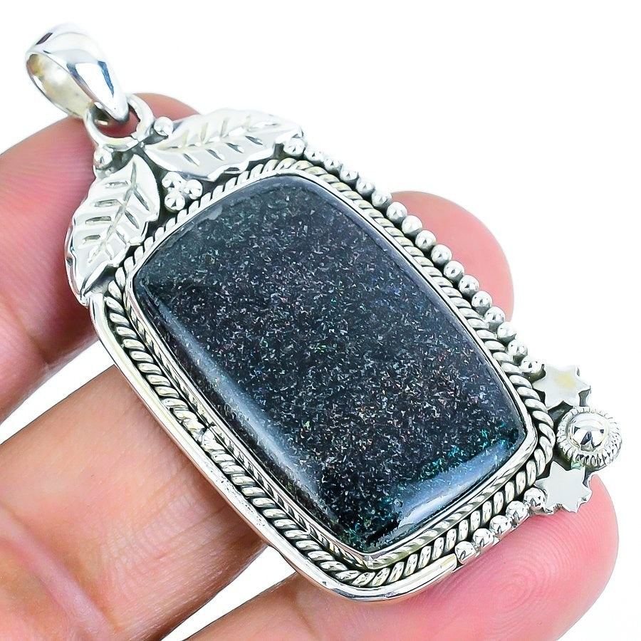 Black Sunstone Gemstone 925 Sterling Silver Anniversary Ethnic Pendant Jewelry
