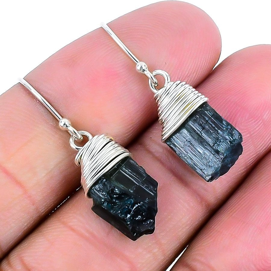 Black Tourmaline Gemstone Sterling Silver Daughter Drop Dangle Earrings Jewelry