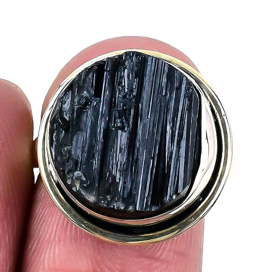 Black Tourmaline Gemstone Sterling Silver Statement Engagement Ring Jewelry US 8