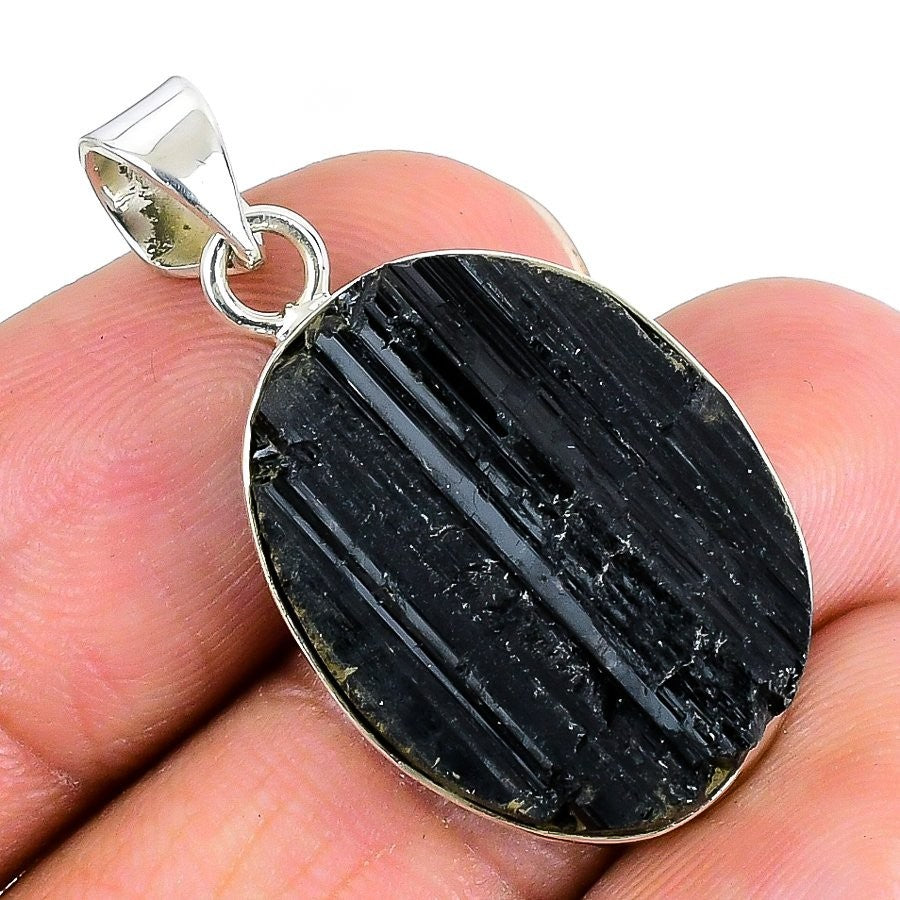Black Tourmaline Gemstone Sterling Silver Trendy Birthday New Pendant Jewelry