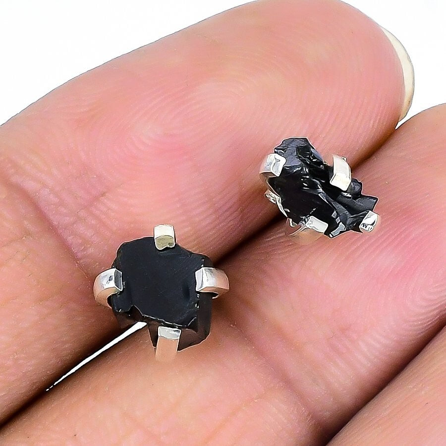 Black Tourmaline Stone 925 Solid Silver Mother Birthday Stud Wedding Earrings