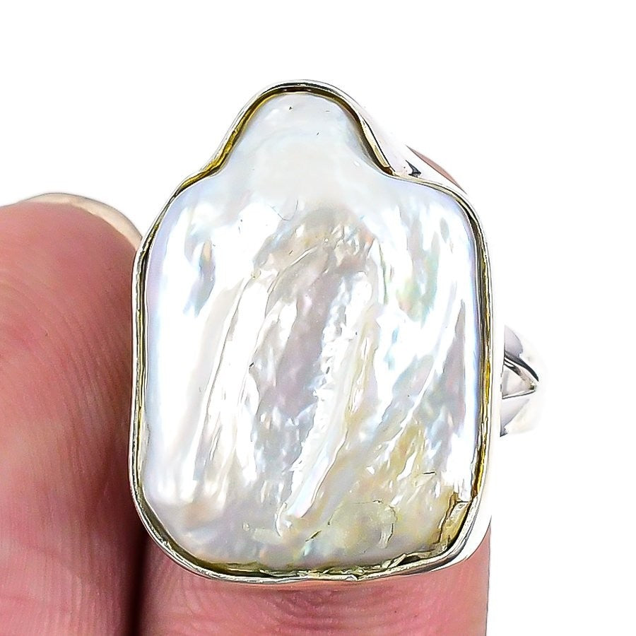 Blister Pearl Gemstone 925 Sterling Silver Daughter Trendy Statement Ring US 8