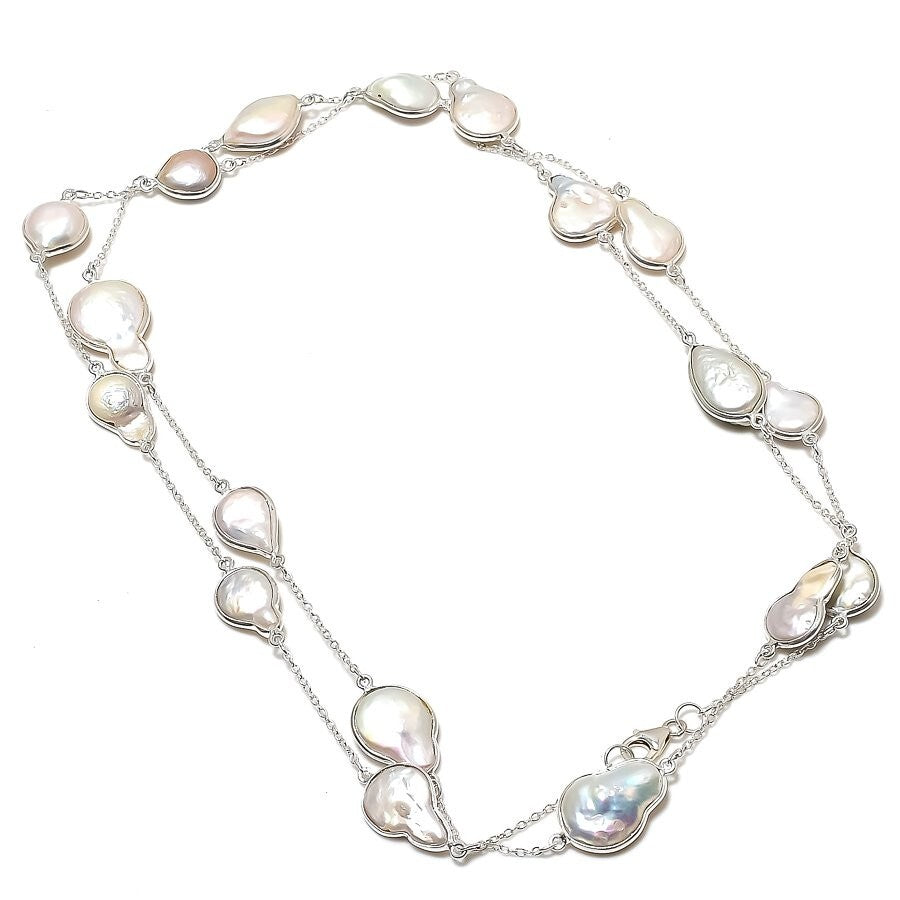 Elegant Blister Pearl Gemstone Art Deco New Chain in 925 Ste