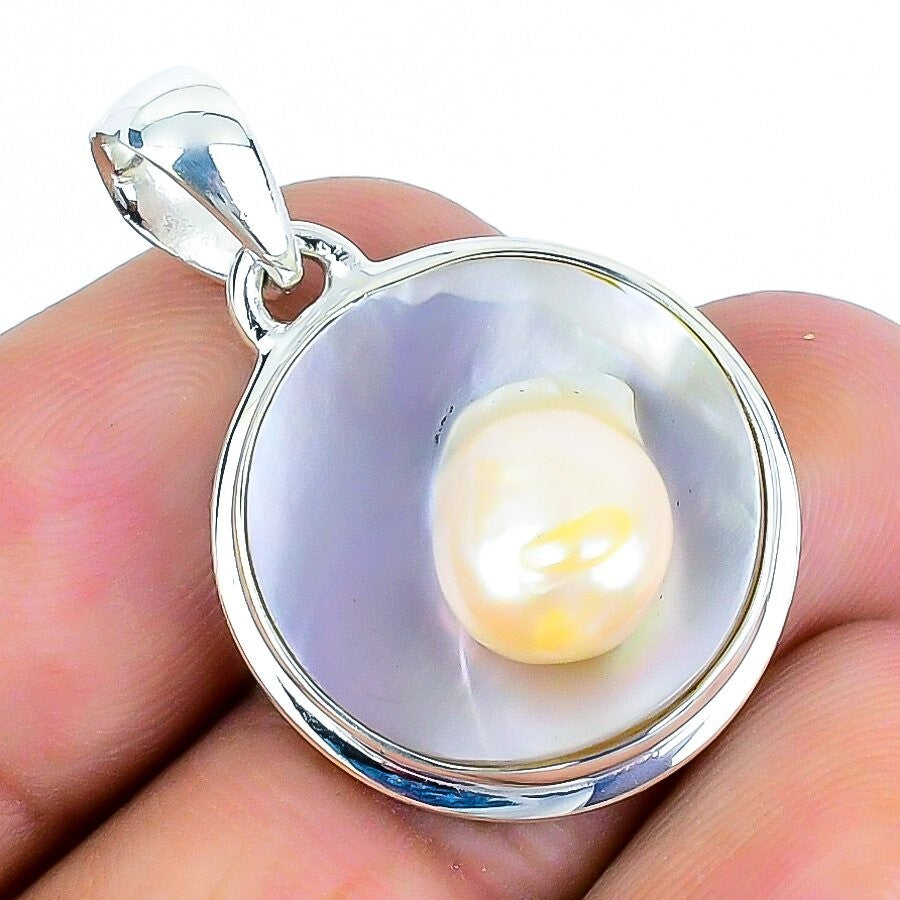 Blister Pearl Stone 925 Solid Silver Channel Set Art Deco New Pendant Jewelry