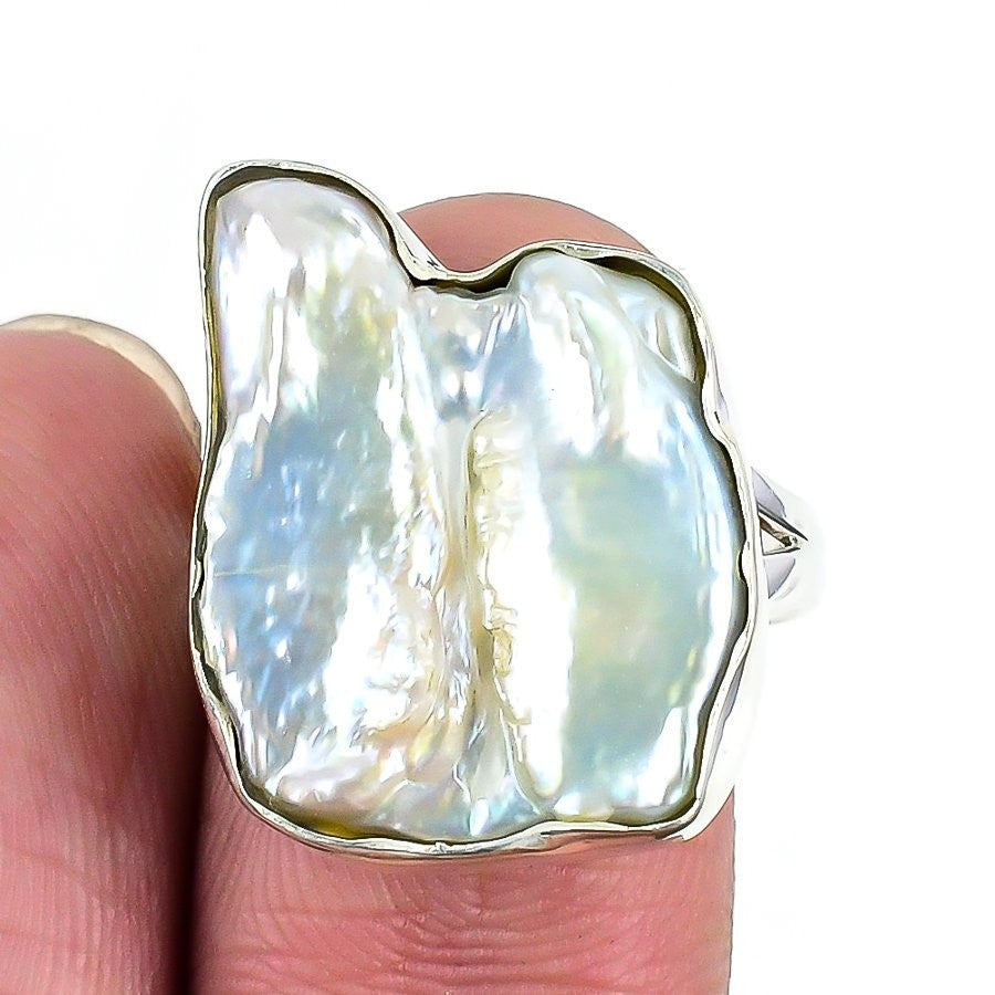Blister Pearl Stone 925 Sterling Silver Handmade Statement Ring Jewelry US 8.5