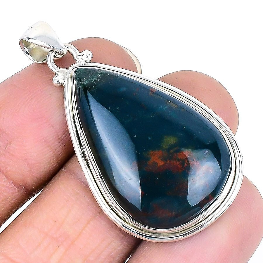 Bloodstone Gemstone Solid Sterling Silver Handcrafted Wife Boho Pendant Jewelry