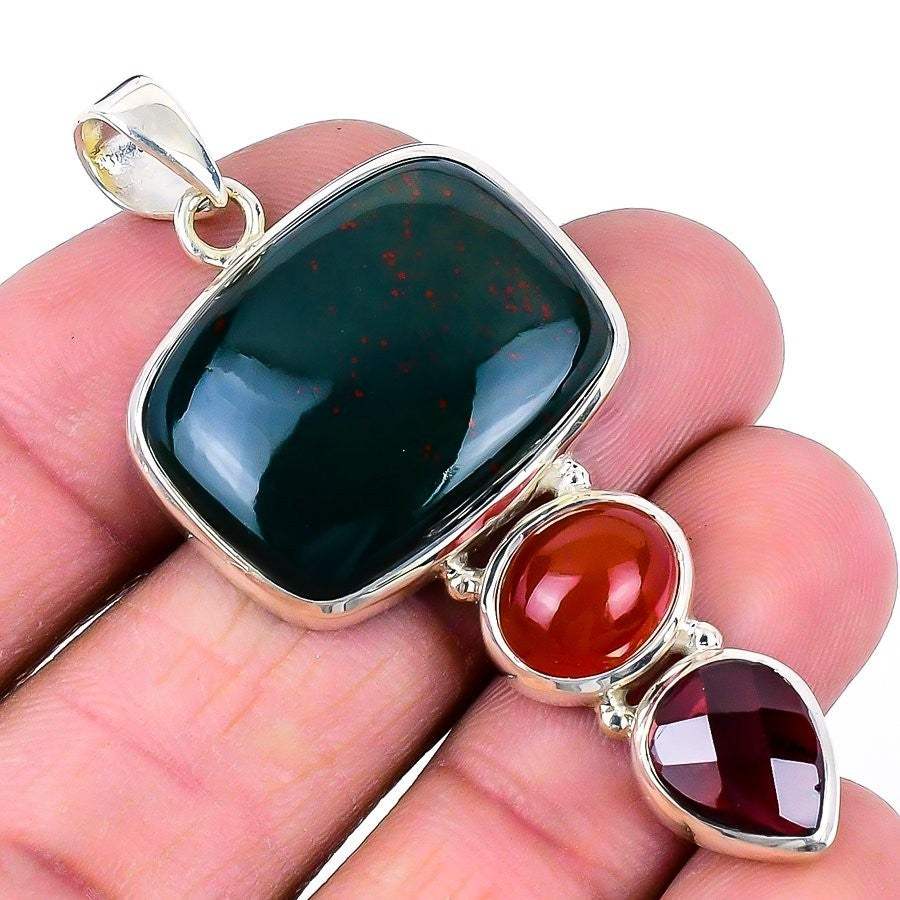 Bloodstone Stone Ethnic New March Birth Wedding Pendant Jewelry 925�Solid�Silver