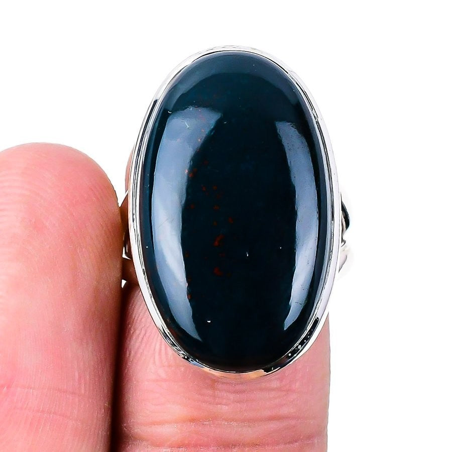 Bloodstone Stone Statement Anniversary Ethnic Ring Jewelry Size 7.5 925 Silver