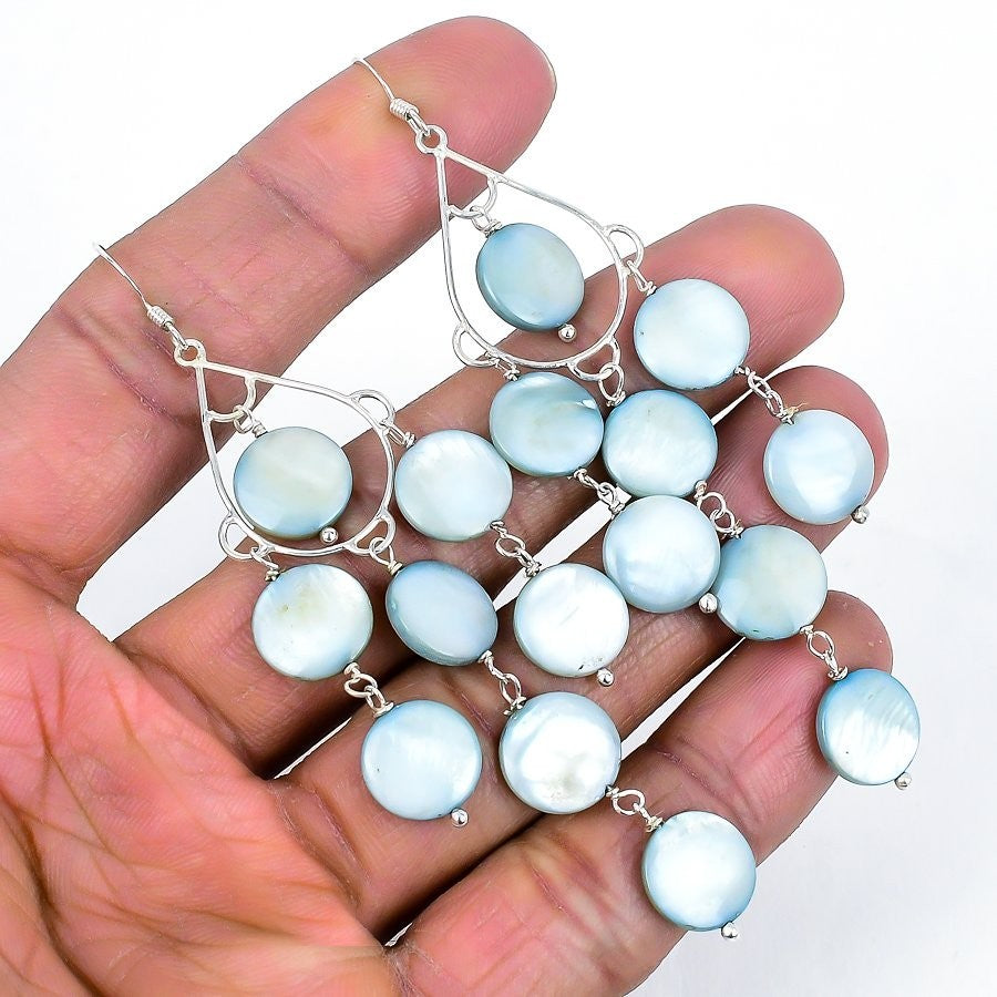 Blue Blister Pearl Stone Sterling Silver Dangle Drop Daughter Earrings Jewelry