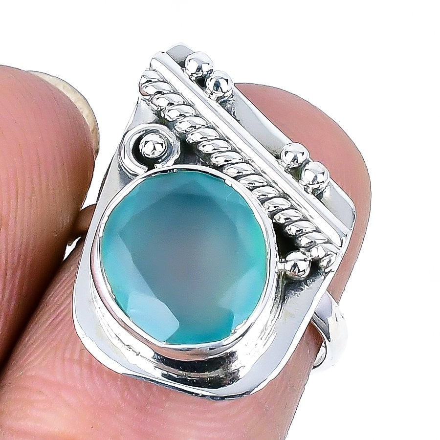 Blue Chalcedony Faceted Gemstone Statement Mother Ring Jewelry Size 7 925 Silver