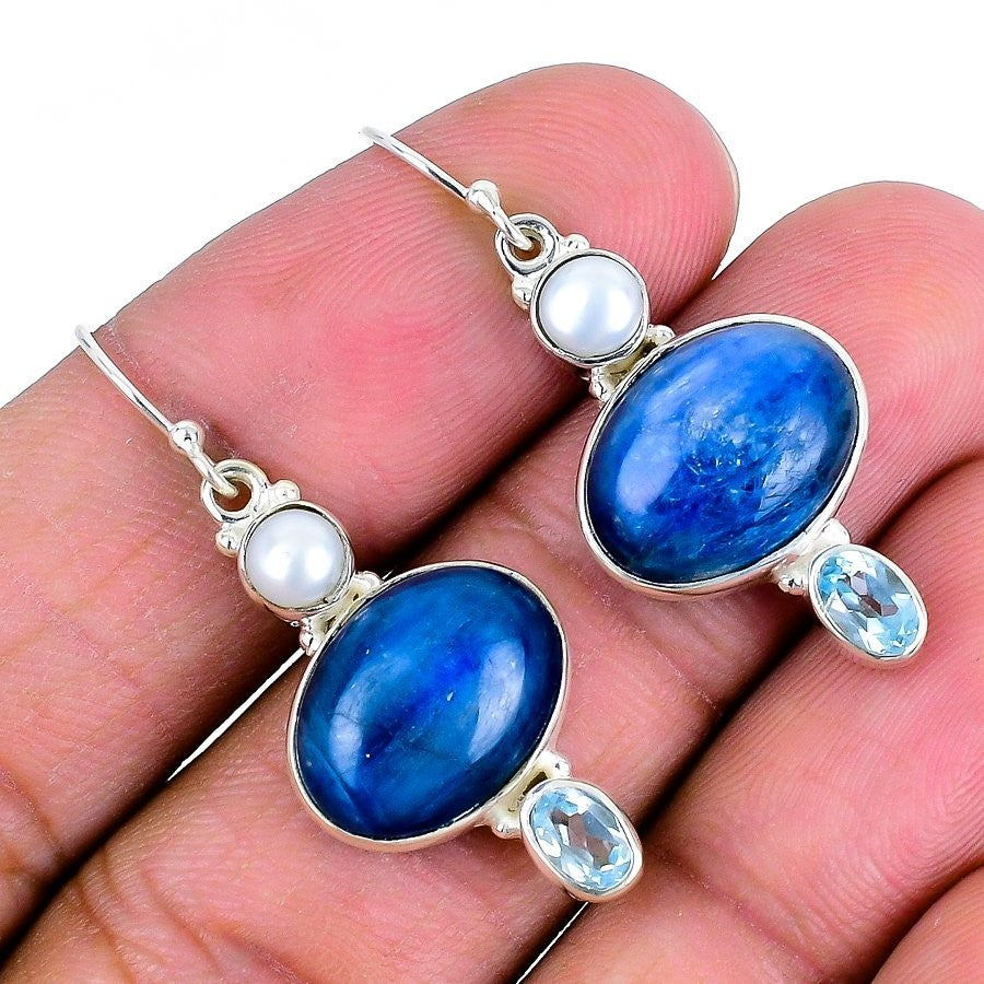 Elegant Blue Kyanite Stone Solid Silver Artisan Drop in 925