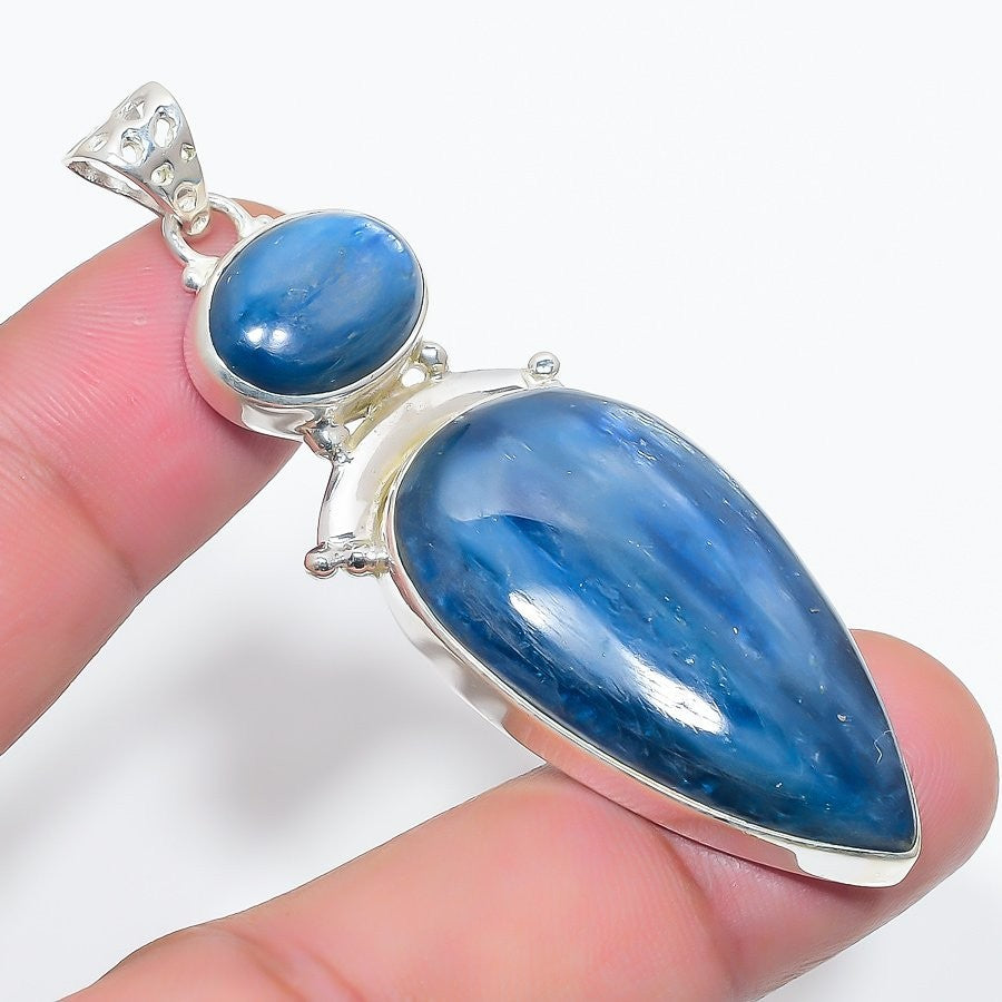 Elegant Blue Kyanite Stone Solid Silver Sister Throat in 925