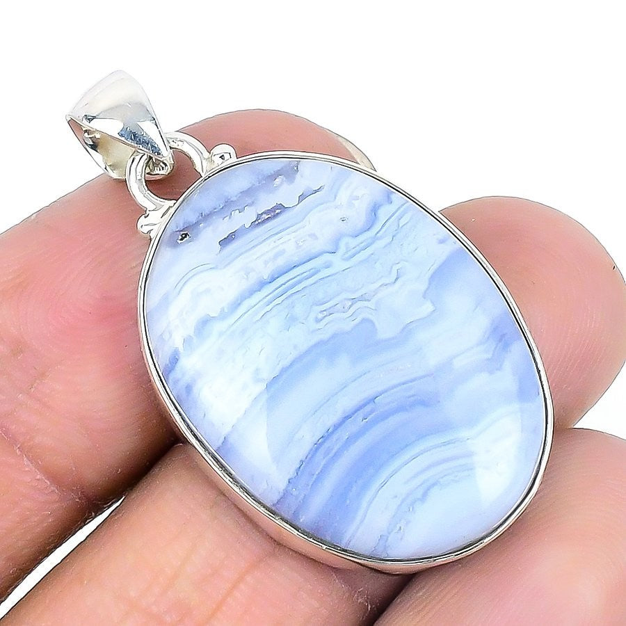 Blue Lace Agate Gemstone 925 Silver Daughters Day Engagement Boho Trendy Pendant