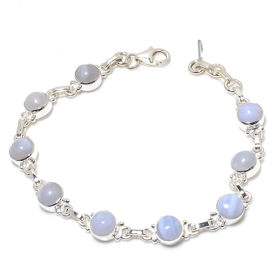 Blue Lace Agate Gemstone 925 Silver Daughters Day Wedding Chain Sister Bracelet