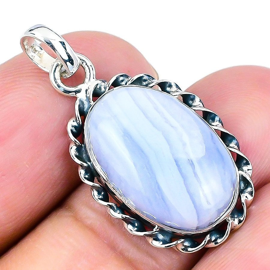 Blue Lace Agate Gemstone 925 Sterling Silver New Ethnic Daughter Gift Pendant