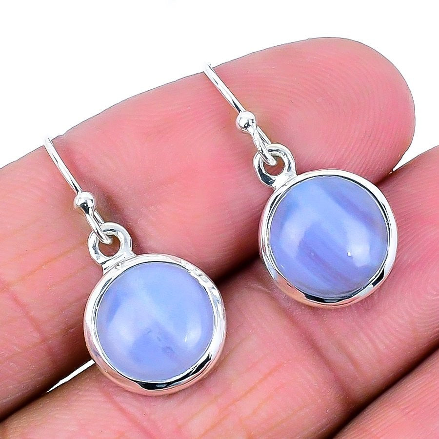 Blue Lace Agate Gemstone Dangling Artisan Daughter Gift Earrings Solid Silver