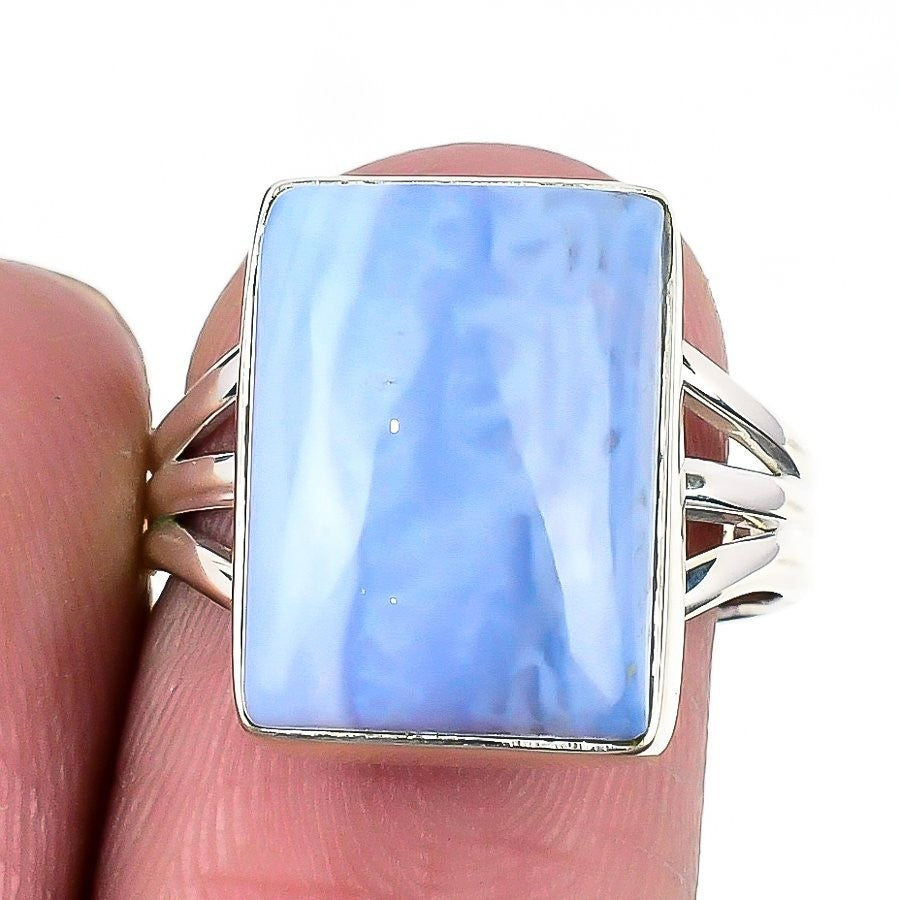 Blue Lace Agate Gemstone Solid Silver Unique Statement Mother Ring Jewelry US 8