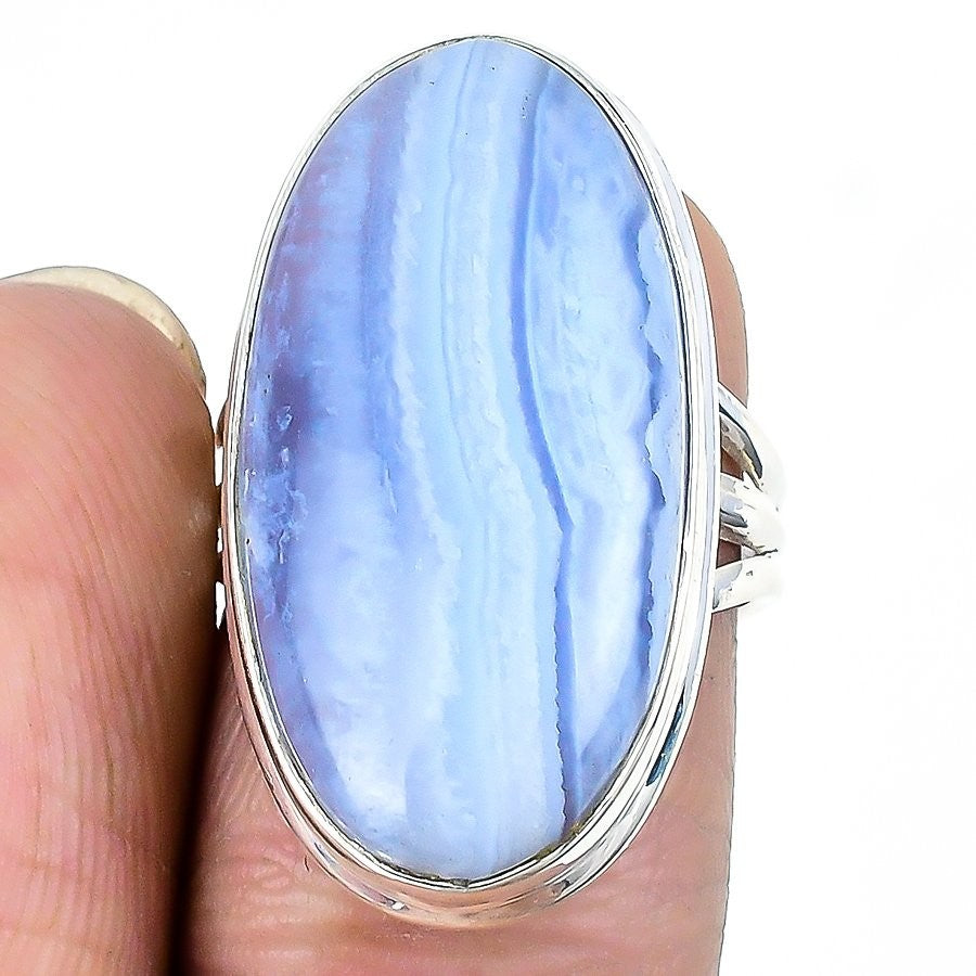 Blue Lace Agate Gemstone Solid Silver Wife Statement Wedding Ring Jewelry Size 7