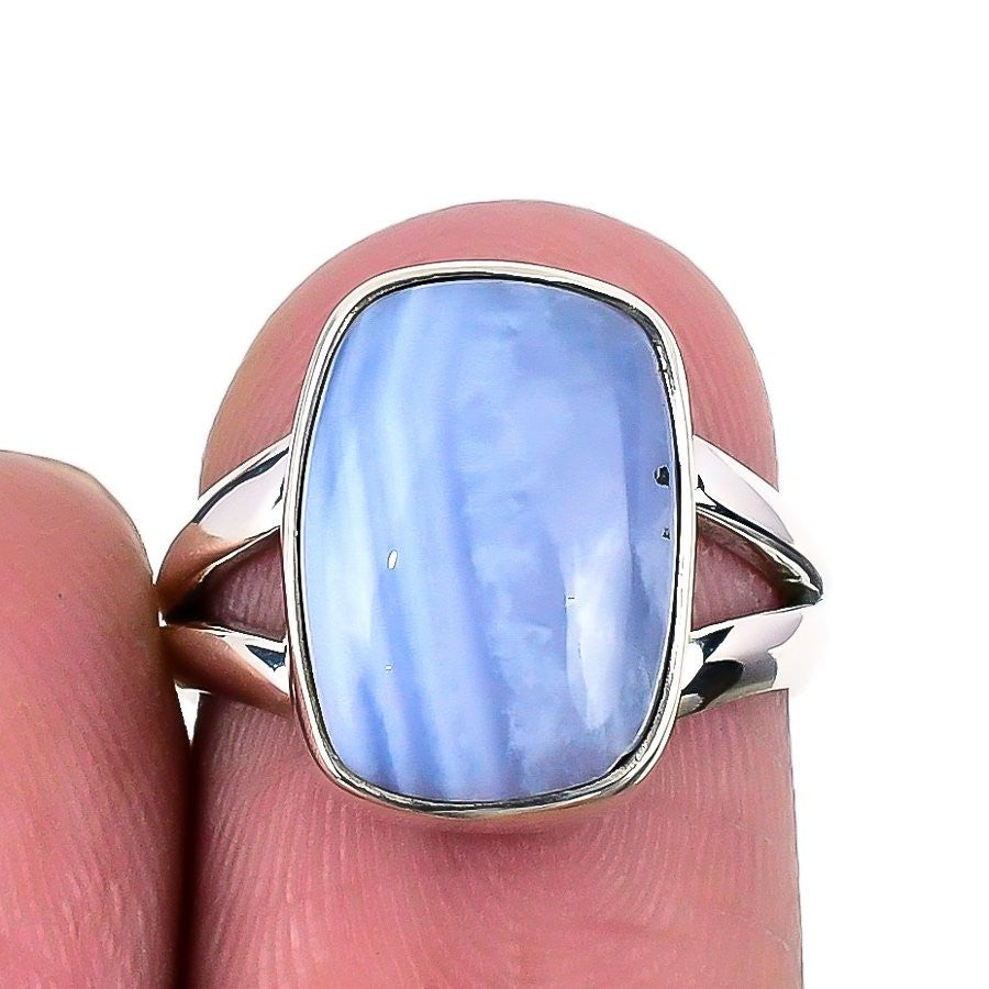 Elegant Blue Lace Agate Gemstone Solid Sterling Silver in 92