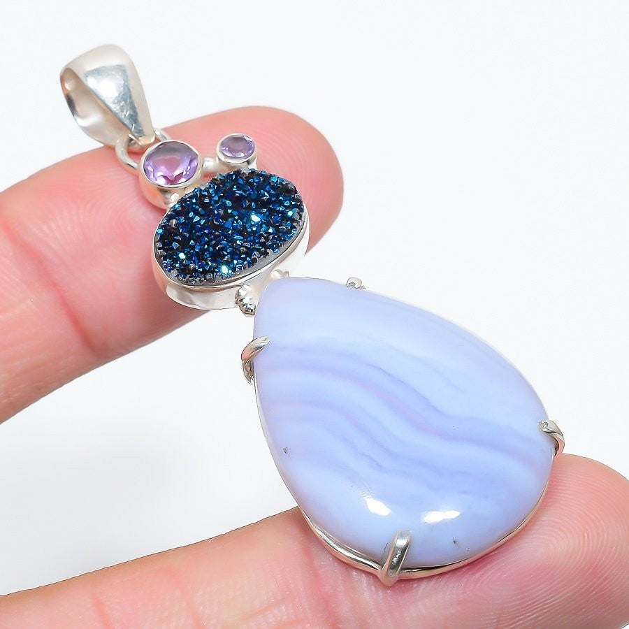 Blue Lace Agate Gemstone Sterling Silver Best Daughters Gift Sister New Pendant