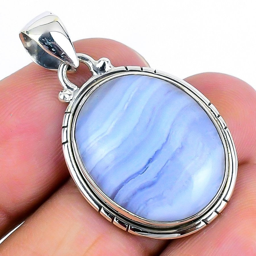 Blue Lace Agate Gemstone Sterling Silver Daughters Day Wedding Birthday Pendant