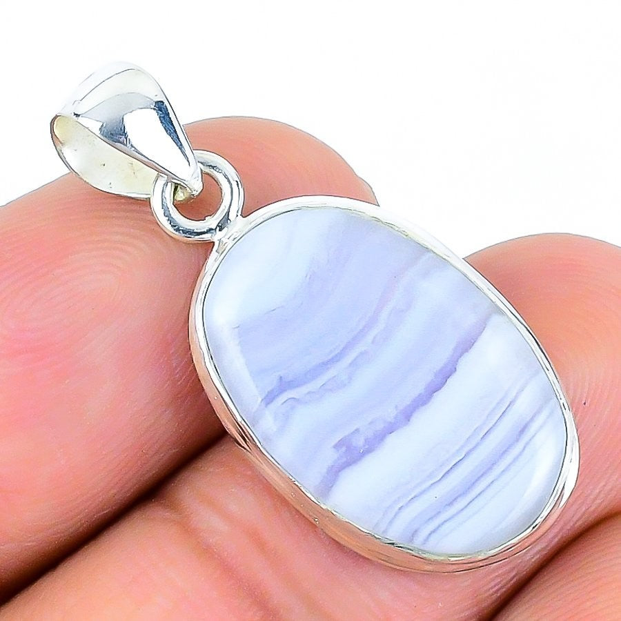 Blue Lace Agate Gemstone Sterling Silver Wedding Mother Unique Pendant Jewelry