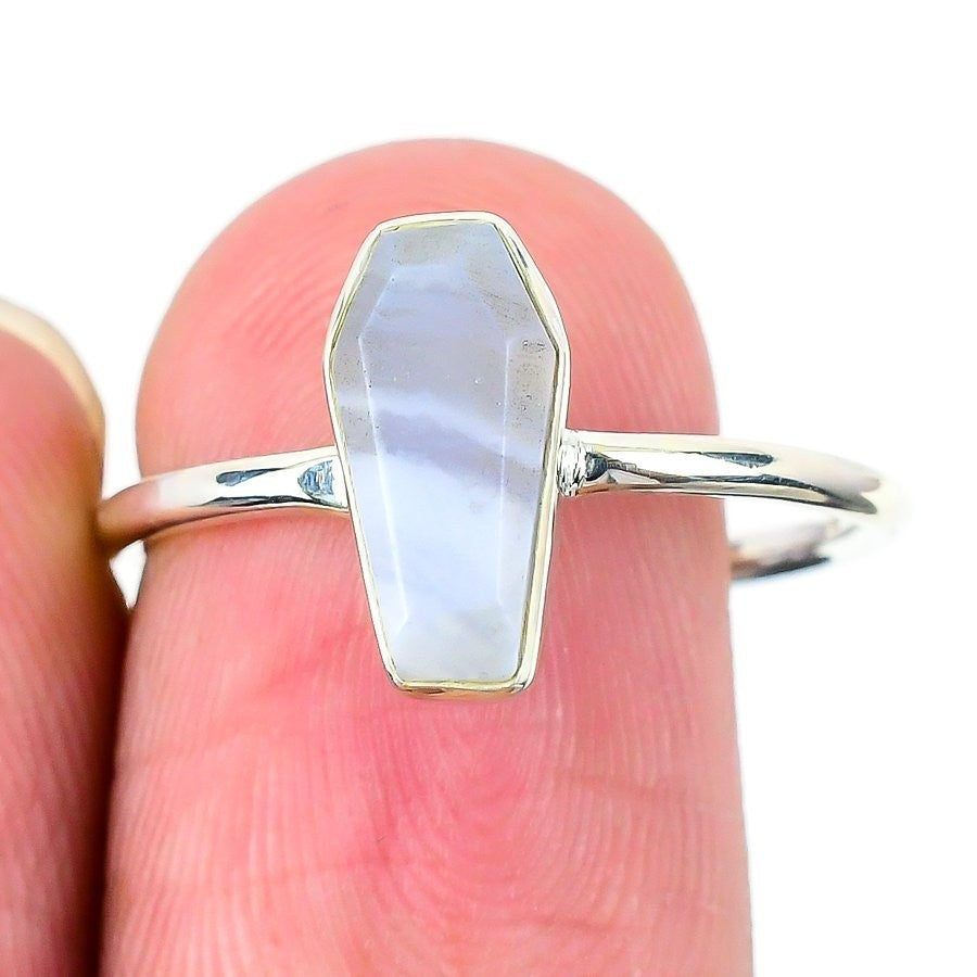 Blue Lace Agate Gemstone Sterling Silver Wedding Statement Ring Jewelry US 10