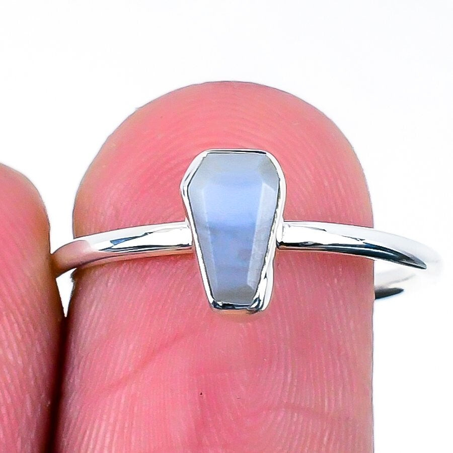 Blue Lace Agate Stone Solid Silver Handmade Artisan Band Sister Boho Ring Size 8