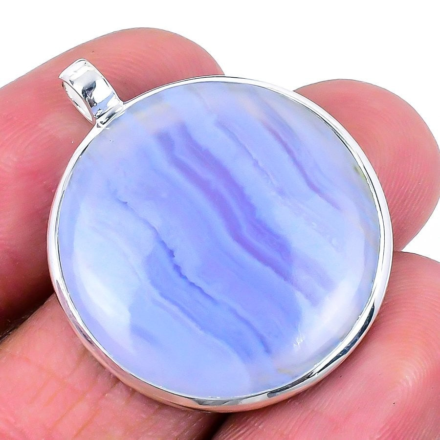 Blue Lace Agate Stone Sterling Silver Engagement Daughters Day Pendant Jewelry